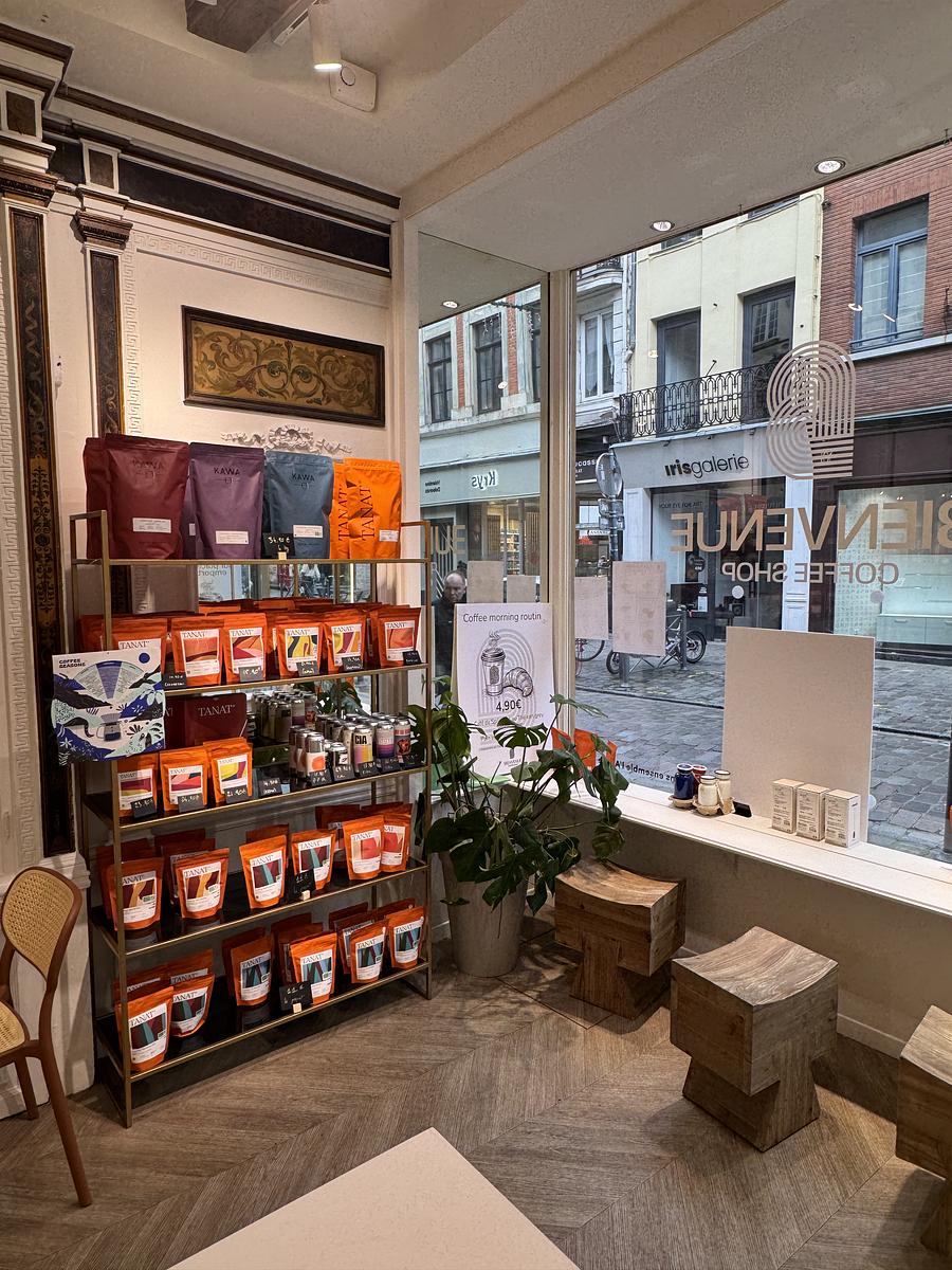 We offer everyday 3 espressos and 3 V60 a batch brew and different prices when you take you espresso or double espresso at the counter. Of course we offer hot chocolate, teas, chais and other lattes. We have fresh and quality pastries everyday. The coffee is in the heart of Lille in a historic building. The majority of our coffees are roasted in France (Tanat, Cloud forest for the moment).